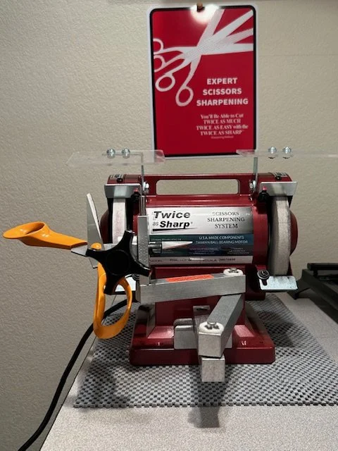 You will be able to cut twice as much twice as easy after we sharpen your scissors with our TWICE AS SHARP system.